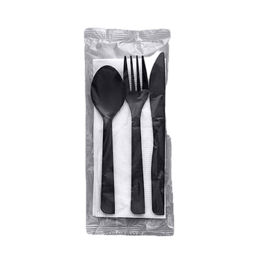 6 INCH FORK, SPOON & KNIFE W/NAPKIN SET WRAPPED IN PE BAG (WHITE)